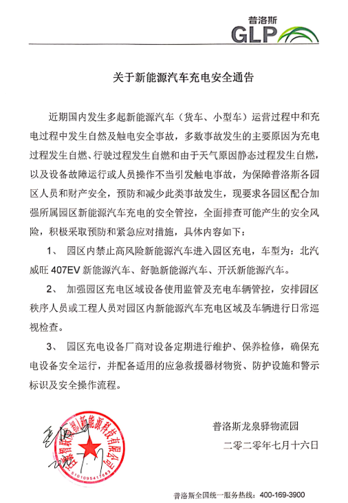 普洛斯园区充电安全提醒防范注意